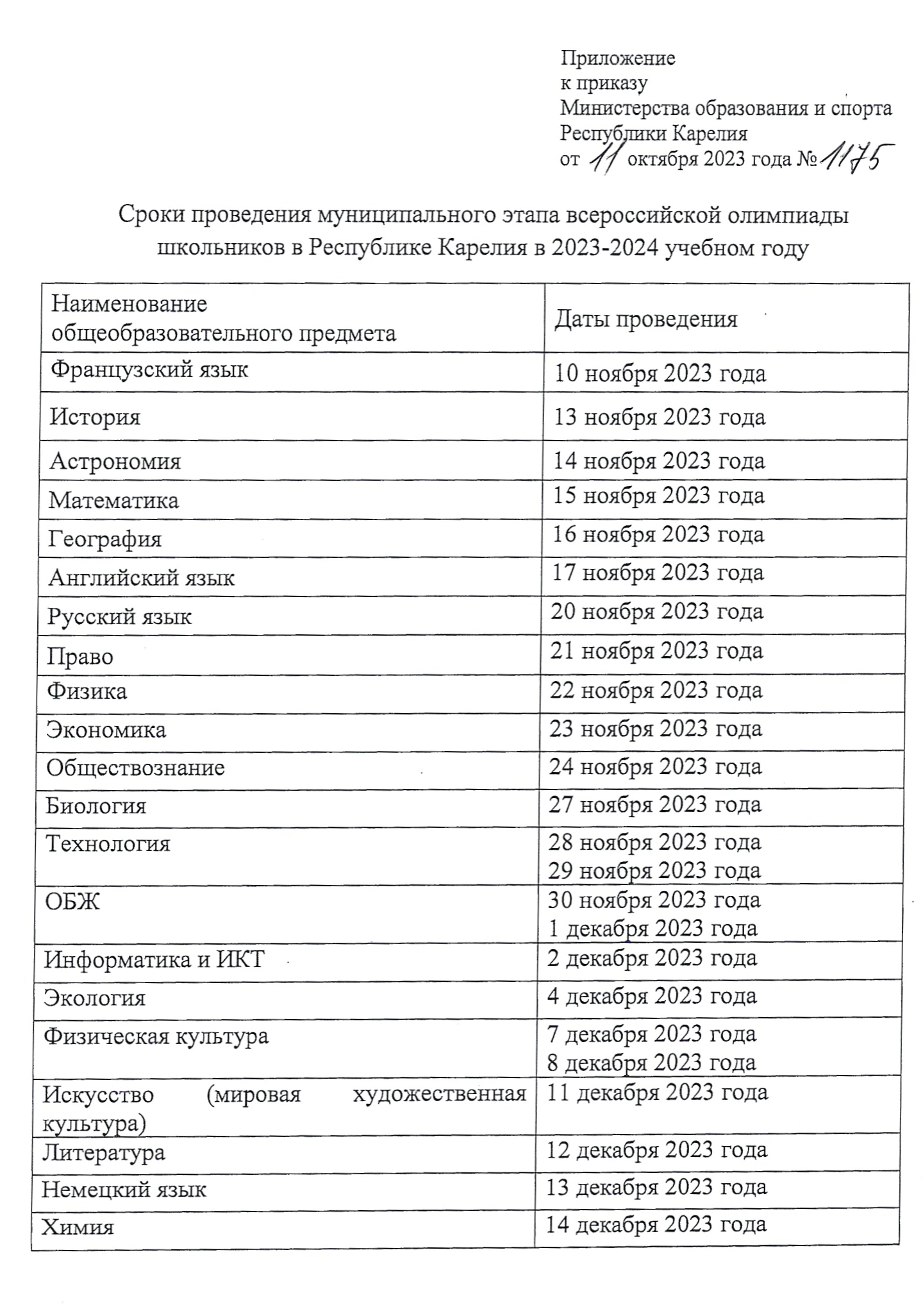 Приказ Министертва образования и спорта РК