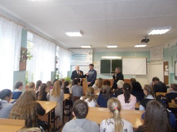 Валентин Иванович проводил встречу с учащимися нашей школы. Сначала они посетили Курган Славы и возложили цветы. После Валентин Иванович рассказал о боевом пути 313-й стрелковой дивизии, о своём отце и музее воинской славы города Камышлова.